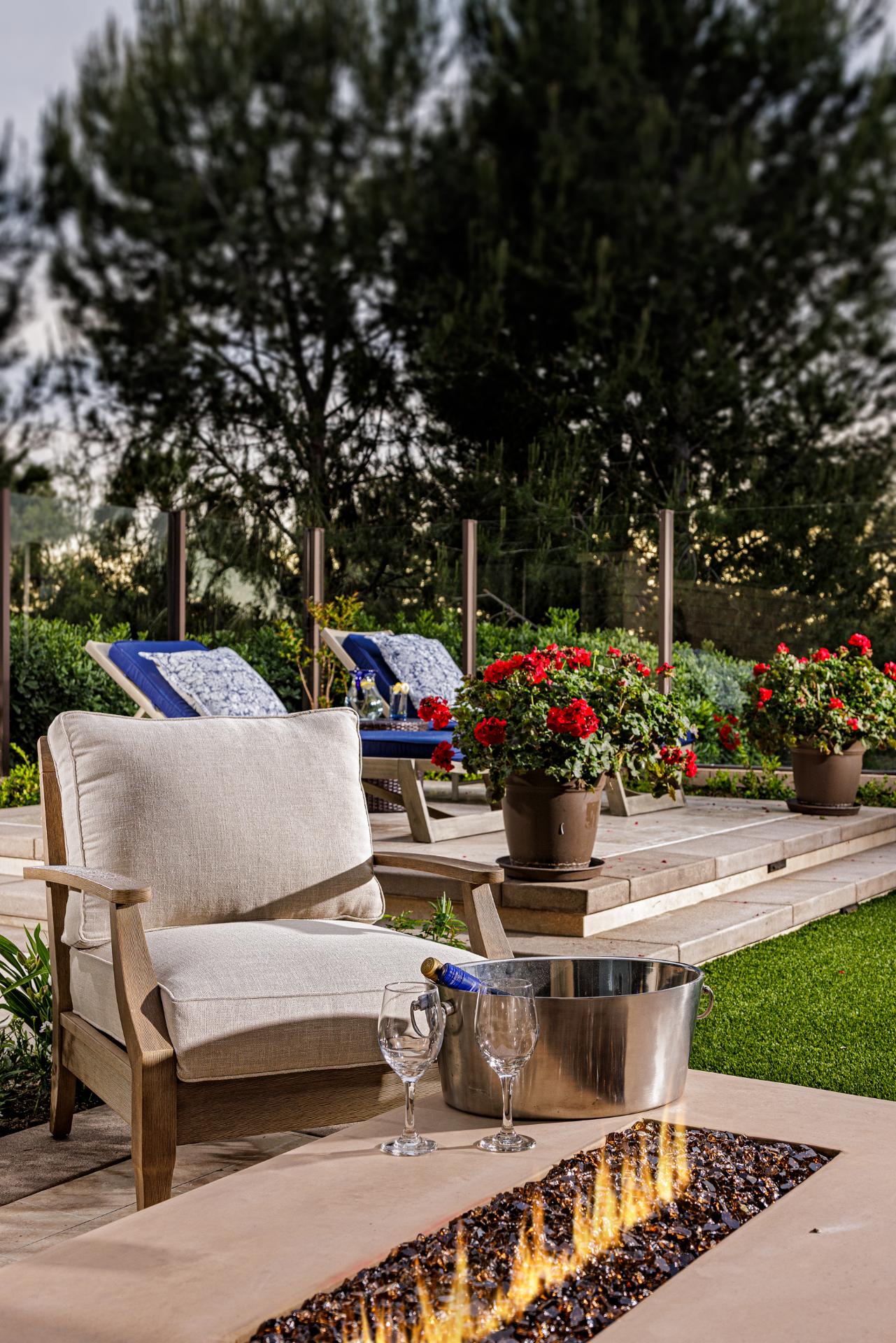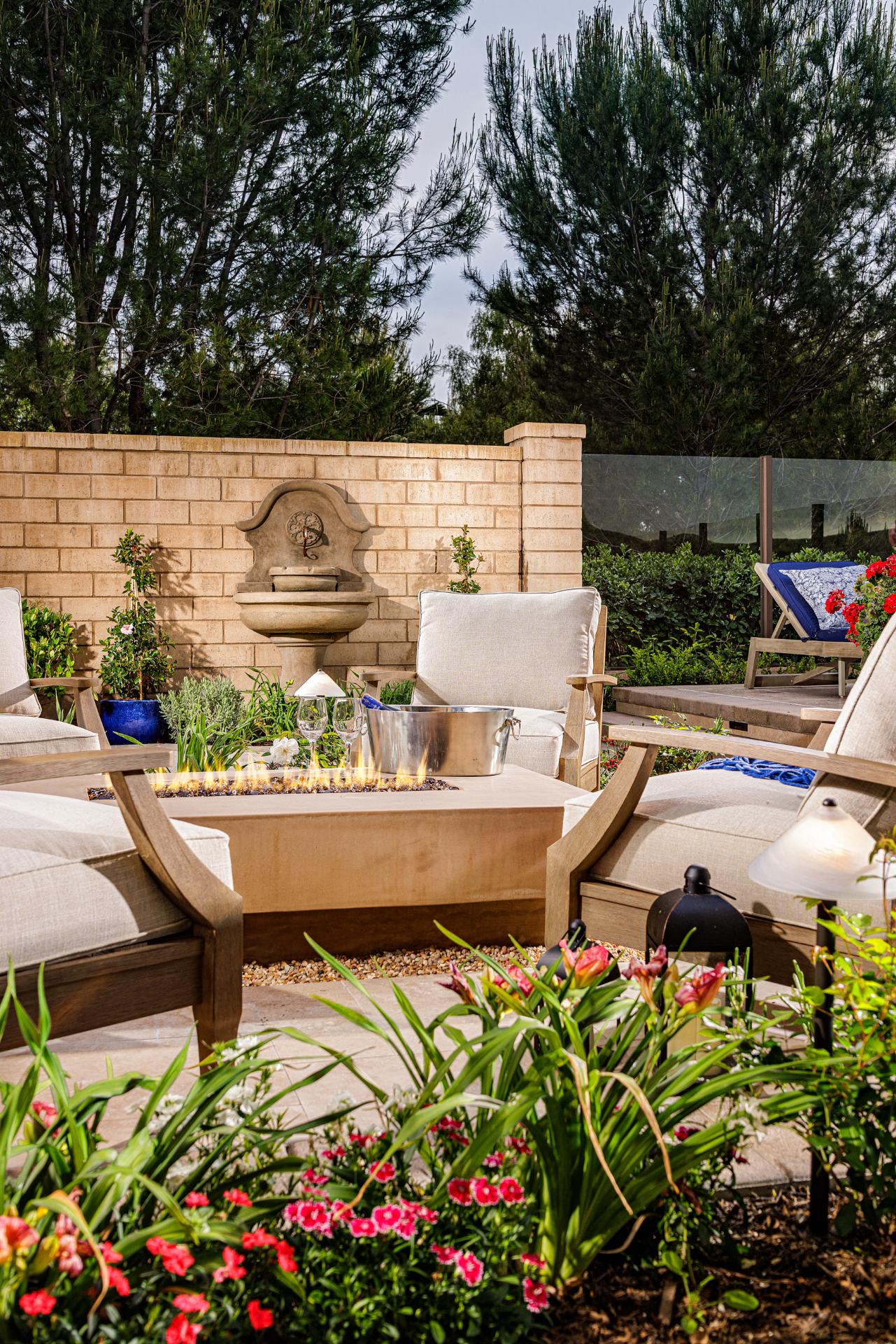 The redesigned yard blends modern finishes with natural textures, creating a perfect balance of sophistication and warmth. The custom fountain and fireplace serve as focal points, while the combination of outdoor tile and turf provides both practicality and aesthetic appeal. What was once an underused yard is now a stunning retreat for family gatherings and evening relaxation.